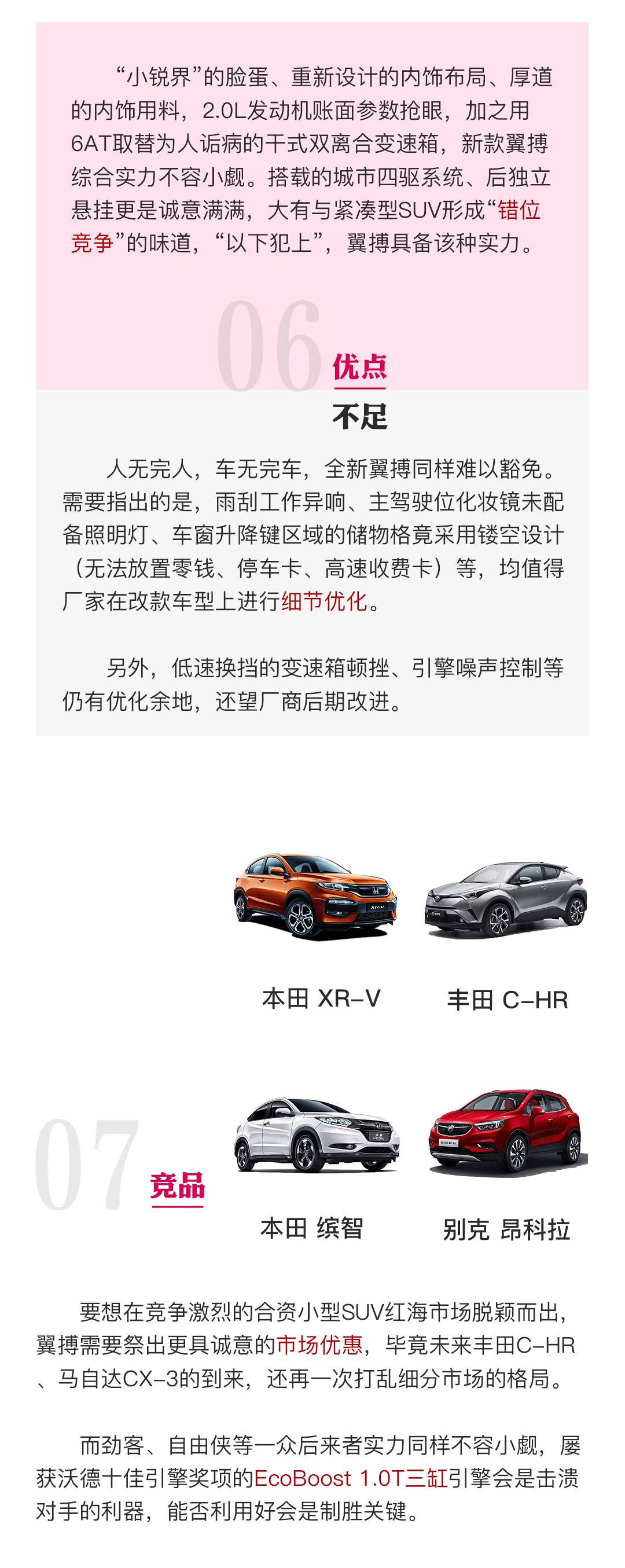 红叶经霜而赤,腊梅沐雪而馨。但愿“个小馅足”的翼搏,能像小托马斯一般扛着炸药包突破禁区,无畏魁梧强大的对手,在红海市场冲出重围、为己正名,假若能正视差距、完善上述不足,撼动XR-V的霸主地位指日可待。