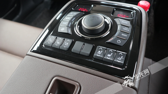 座椅的真皮材质不错,调节选项非常丰富,而且除最低配以外,加热通风都配齐了。副驾驶还有老板键,方便后排乘客调节。偏重后排的属性并没有变,后排中央扶手放下来丰富的调节按钮无论是功能性还是配置都非常照顾面子上的需求。