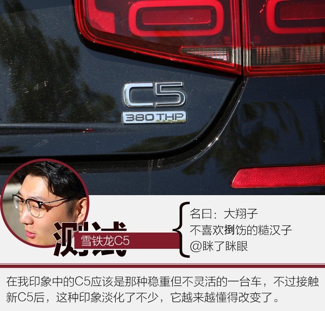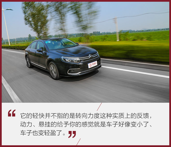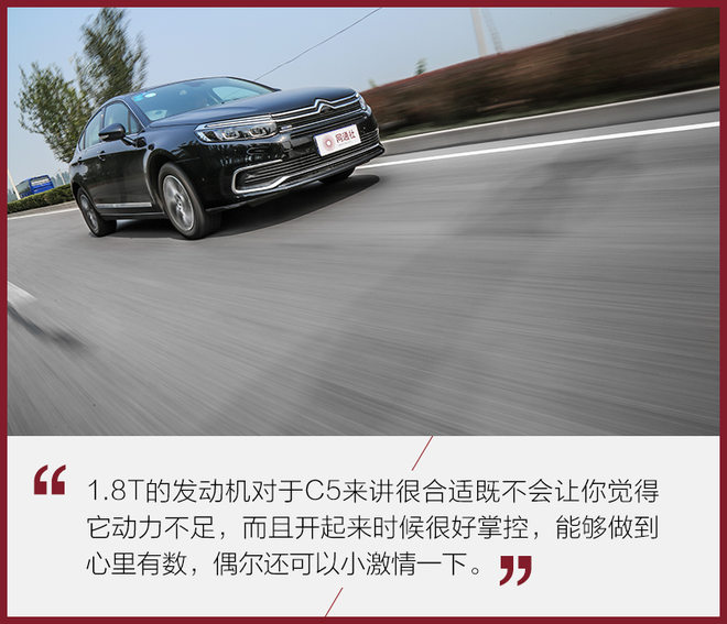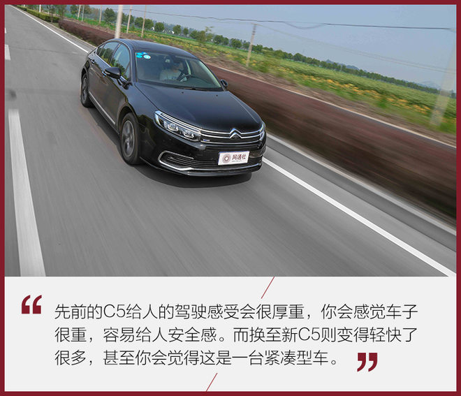 在驾驶感受方面,C5更加轻快了,这里并不是说它的动力很强,而是整体的行驶感受会让你感觉C5好像变轻了。方向盘的转向,深踩油门后续动力的补充,都能让你感觉,C5的确是有备而来。