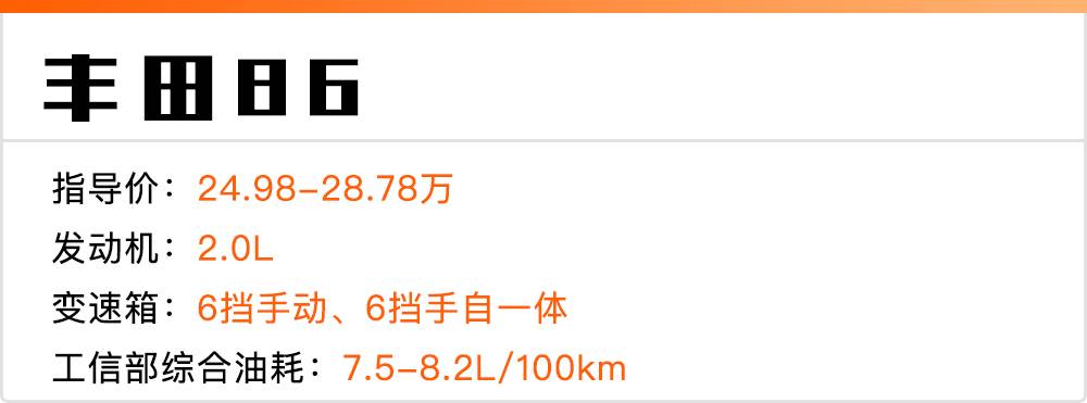 砖叔点评:试问谁年轻时不想拥有一辆跑车?反正砖叔想过。并不是所有的跑车都那么高高在上,也有许多价格亲民的跑车能够让年轻人选择,比如前段时间退出中国市场,现在越来越难买到的丰田86 (配置|询价),2.0L水平对置发动机,后驱布局,动力不强也能让你充分体验到跑车的乐趣;另外86还有4个座位和一个容积可观的后备箱,实用性也不错。20多万就能买到正宗的跑车体验,心动了就赶紧行动吧,丰田86再过一段时间就真的买不着了。