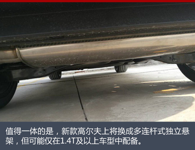 新高尔夫尾部线条更加流畅,尾灯使用了全新的矩阵式LED光源,同时还配有流水式后转向灯,搭配连贯的镀铬双排气尾喉,以突出整车的运动风格。值得一体的是,新款高尔夫上将换成多连杆式独立悬架,但可能仅在1.4T级以上车型中配备。
