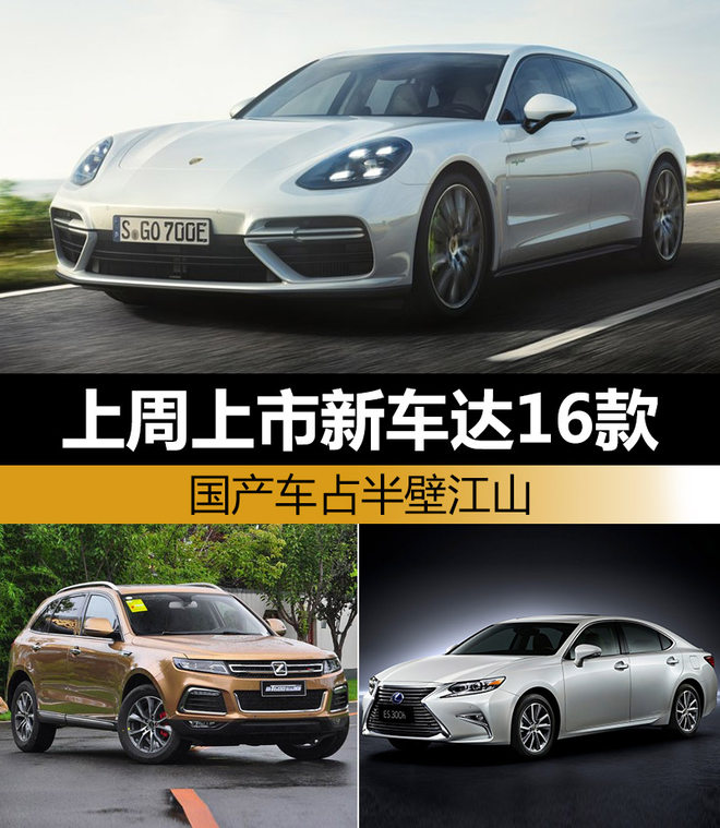 网通社通过对上周上市新车梳理后发现,上周上市新车达16款,其中国产车型为8款,占据了大半。此外,在上市的15款车型中最便宜的仅仅不到5万,而在豪华车阵容中,保时捷Panamera Turbo S E-Hybrid Sport Turismo(插电混动版)售价高达262。8万元起。