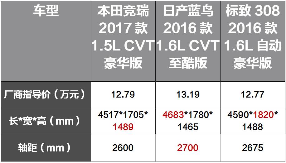 参与对比的三款车型无一例外都拥有抢眼的外观,竞瑞激进的前脸,加上小尾翼的设计,营造了动感的氛围;蓝鸟低矮的车身和悬浮式车顶的设计也是一大特点,且因其在三者中车身和轴距最长,也能保证后排的乘坐空间;标致308则是被称赞为标致近些年最成功的设计,许多细节,如“狮爪式”尾灯也让人过目难忘。