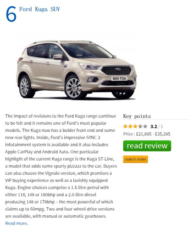 这个就好理解了,英国也在吹SUV风,那么口碑最好,驾驶最得英国人心的福特,自然只要是辆SUV都能吹起来。当然肯定有人问,论驾驶什么时候到福特翼虎呢?怎么都该马自达吧?这个问题我也想了好久,或许是福特在英国口碑积累好,或许是英国那种路况,弯多,转盘多,需要起步够狠的车,马自达的几个动力在这就没有什么优势了。