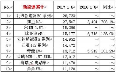在新能源销量前十名中,北汽新能源EC系列、上汽荣威RX5 1.5T EDU赫然在列,比亚迪、奇瑞、长安、吉利等车企新能源均榜上有名,然而广汽集团在其中从未占据一席之地。