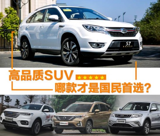 永远不嫌多的除了money之外,还有国内的SUV车型。在SUV细分市场销量份额不断升温的情况下,各大自主品牌都在不断丰富其SUV产品线,而如雨后春笋般层出不穷的新车型也让产品之间的竞争更加白热化。在众多车型中,比亚迪S7、吉利博越、传祺GS4 (配置|询价)、哈弗H6这四款车型凭借成熟的产品力和均衡的性能,赢得了消费者的认可,成为大热车型。今天,小编就将这几款车型进行全方位对比,给大家分析一下究竟哪款才是国民首选!