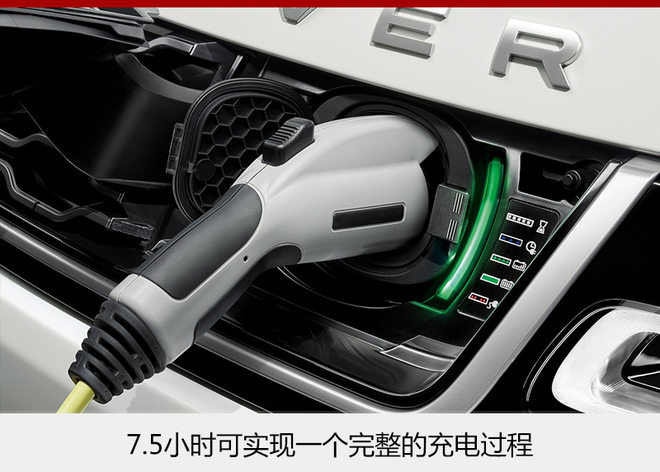 打开路虎揽胜运动版PHEV的进气格栅,可以看到充电面板。新车提供三种充电模式,分别为标准充电、快速充电和限时充电,以满足用户的需要。大约7.5个小时就可以实现一个完整的充电过程,快速充电只需2-3个小时。用户还可以通过充电面板监视充电过程,白灯为连接状态、蓝灯为限时充电时间设定、闪烁绿灯为正在充电、绿灯常亮为电池充满。