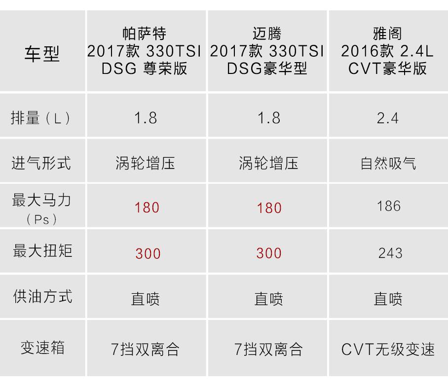 动力方面,帕萨特和迈腾都采用了大众第三代EA888 1.8T涡轮增压混合喷射发动机,动力参数一致,传动方面,两车也同样采用的是一台代号为DQ380的7速湿式双离合变速器,没有太大差距。当然,涡轮增压的优势比较明显,1.8T已经和雅阁2.4L的动力相差无几。而九代雅阁采用地球梦发动机自然吸气发动机+CVT动力组合,平顺性和燃油经济性占优。