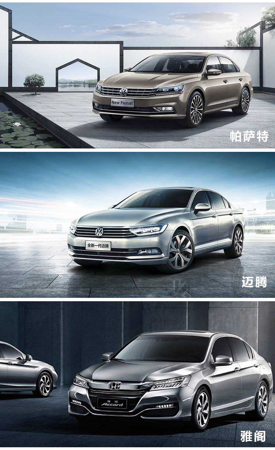 今天番茄哥就把市面上关注度高的三款中级车,也都是月销破万的销量好手,拉出来对比一番,它们分别是上汽大众-帕萨特 (配置|询价)、一汽大众-迈腾 (配置|询价)和广汽本田-雅阁。
