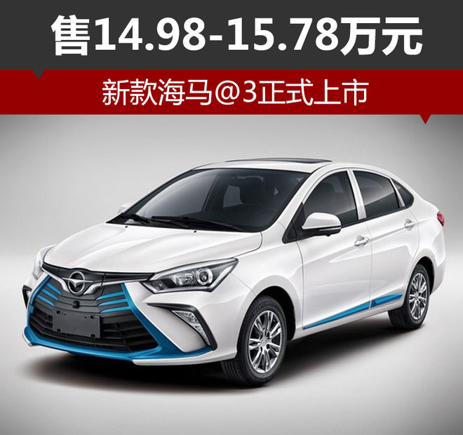 海马@3定位为紧凑级纯电动轿车,基于传统燃油车型海马M3打造。网通社从海马官方获悉,新款海马@3正式上市,共推出两款车型,售价区间为14.98-15.78万元,补贴后售价为9.58-10.38万元(北京地区)。新车前脸采用大尺寸多横幅进气格栅,并配有蓝色饰条点缀,整体造型时尚前卫。动力方面,新款海马@3将搭载一台最大功率达70千瓦的电动机。