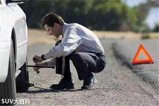 在路上,第一要务是保障自身安全。换胎之前先找个你觉得安全的地方把车停好,立上警示标。要是在夜间最好弄个灯光警示,买车险似乎都会送带警示功能的手电筒,警示标也立得越远越好。