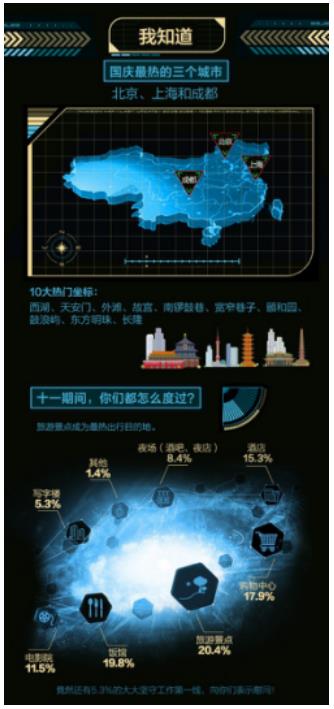 此外国庆集中出游的用户大多集中在哪些城市呢?首汽约车通过十一出行的大数据统计,分析出了答案。在整个国庆期间出行最热门的三个城市分别是北京、上海和成都,而最热门的十个景点分别是西湖、天安门、外滩、故宫、南锣鼓巷、宽窄巷子、颐和园、鼓浪屿、东方明珠和长隆。从之前网络上热传的情况来看,西湖、南锣鼓巷、宽窄巷子确实是游客聚集的重灾区。