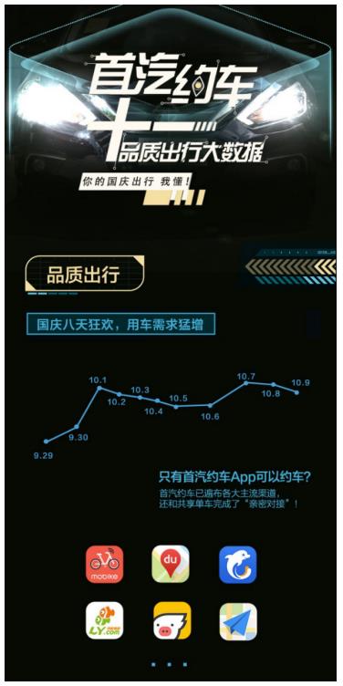 根据首汽约车公布的“十一出行大数据”,我们可以看到首汽约车的叫车形式发生了变化。目前首汽约车已经遍布主流地图平台及携程、飞猪、同程等OTA平台,还和摩拜单车完成了“亲密对接”,因此用户可以通过首汽约车App、各大地图App和摩拜单车App等来完成约车动作。