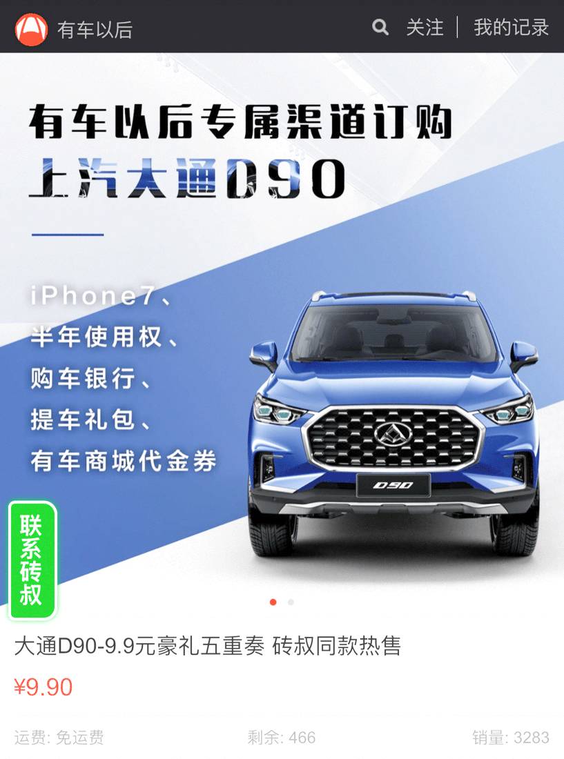 9.9元众筹抢大通D90半年使用权活动