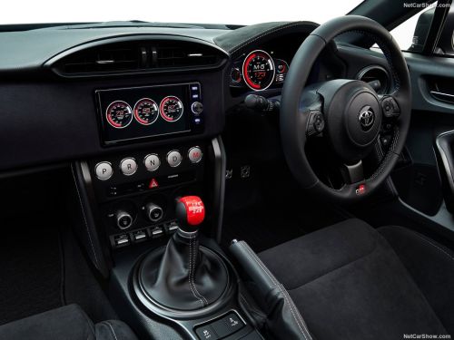 2。侧面基本维持86的轮廓,亮黑色的花瓣状铝合金轮圈搭配红色刹车卡钳,车尾线条棱角分明,尾灯具有一定辨识度;
