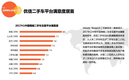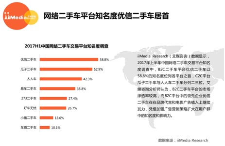 上月,据艾媒咨询集团发布的《2017上半年中国网络二手车交易平台市场研究报告》显示,优信二手车在消费者满意度、品牌知名度均排名中国网络二手车交易平台第一。