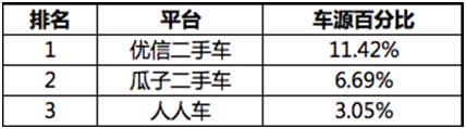 日前,公平价独立第三方大数据平台发布了《2017年9月份全国二手车市场行情报告》。报告显示,优信二手车车源量继续蝉联二手车电商平台第一,车源量大幅增长的同时,车源占比也超过瓜子二手车、人人车之和。