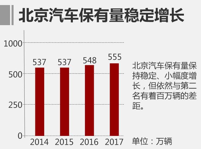今年6月,北京毋庸置疑是全国汽车保有量最多的城市, 2013年520万辆的数字比第二名高出一倍有余,但随后几年由于限号政策的施行,北京汽车保有量得到了有效的控制,增长速度放缓。今年,北京汽车保有量为555万辆,依然是全国汽车保有量第一的城市。