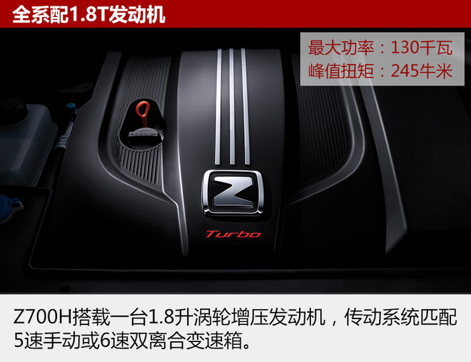动力方面,众泰Z700H搭载1.8升涡轮增压发动机,最大功率为130千瓦,峰值扭矩为245牛米;传动系统方面,匹配5速手动或6速双离合变速箱。(图/文 网通社 白云鹏)