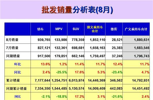 中国车市的销量结构中,SUV增速越来越呈现下滑趋势,8月份零售和批发都已经降低到18%左右,不到前些年的一半;轿车却多月止跌回增,零售批发双双告涨。