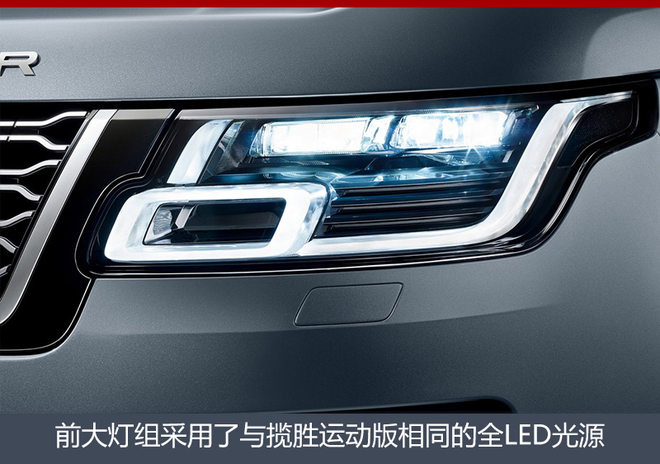 此外,前大灯组采用了与揽胜运动版相似的全LED光源,并提供四种不同选择,包括全LED、LED矩阵式、LED像素和激光像素大灯。而新车还针对前保险杠造型进行了调整,视觉效果得到进一步增强。