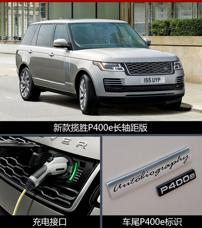 此外,此次推出的新款路虎揽胜还新增了一款插电式混动版——P400e长轴距版车型,新车的整体造型与普通版保持一致,只是在前进气格栅上设计了一个全新的充电接口,尾部还增加了带有P400e的专属标识,表明其新能源的身份。