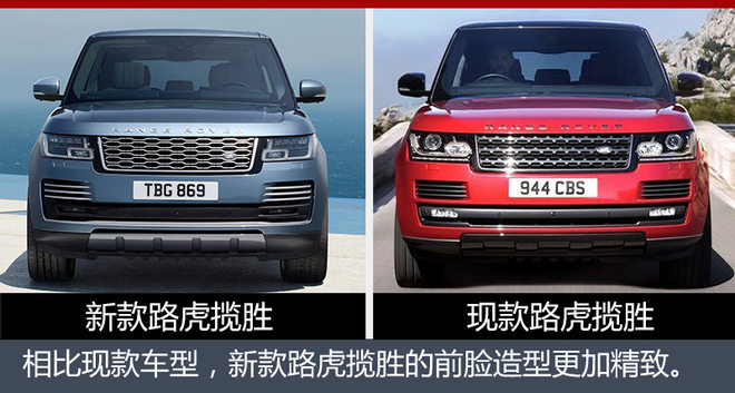 揽胜 (配置|询价)是路虎旗下的一款中大型SUV,拥有出色的操控性及宽敞舒适的内部空间。近日,网通社从路虎官方获得了一组新款揽胜的图片,此次推出的车型中包括了新款揽胜、新款揽胜SV Autobiography以及新增的揽胜P400e长轴距版。外观方面,新车整体造型相比现款车型变化并不是很大,但在细节方面则是进行了全新的升级。据了解,新车预计将于2018年3月在中国市场正式推出。接下来,我们就一起来通过对比看看新款揽胜都有哪些改变。