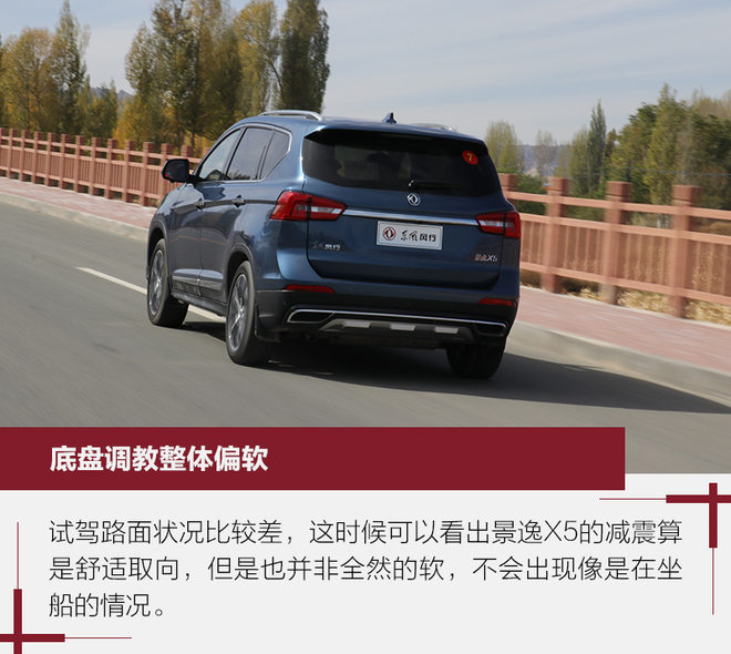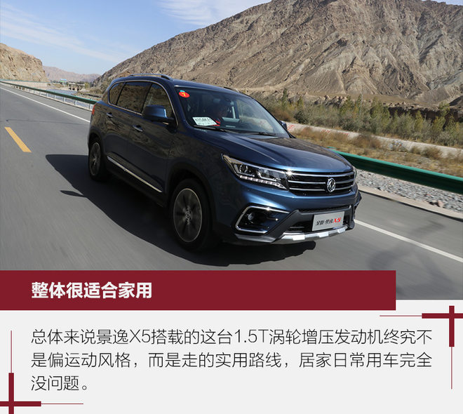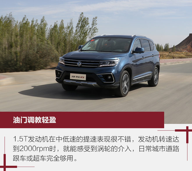 从景逸X5的实际驾驶表现上看,对于油门的响应还是十分敏捷的,涡轮增压发动机低转速扭矩输出的优势让起步阶段更加轻松。