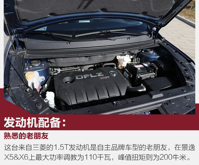 此次车型升级最大的看点来自于动力总成部分,这也是我们此行试驾疑问最多的地方。试驾中常常提起的“双T”动力,指的是“1.5T+CVT”的全新动力总成。全新景逸X5/X6车型都搭载了这套动力系统。(由于活动限制只能体验其中一款车,所以我们本次主要针对这台景逸X5来试驾。完全相同的动力总成,所以景逸X6与它的驾驶感受应该不会有太大差别)