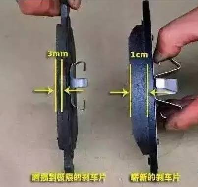 通常情况下一副全新的刹车片厚度在1.5cm左右,当肉眼观察到刹车片厚度小于0.5cm的时候,就要准备更换了。