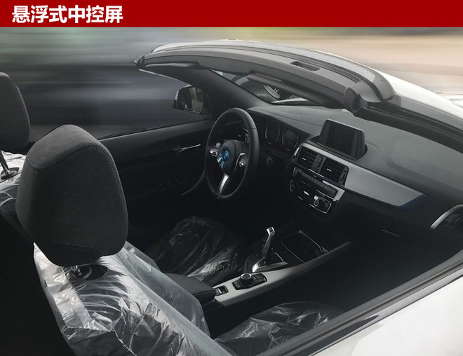 新款宝马2系敞篷版内饰座椅采用真皮进行包裹,整体设计更显运动;中控台顶部配备一块大尺寸显示屏,在日常驾驶中可以快捷方便的操作;全新三辐式方向盘正前方配备全液晶仪表,整体提升车内豪华感。此外,敞篷版车型的车顶可在最高50公里/小时车速下全自动操作。