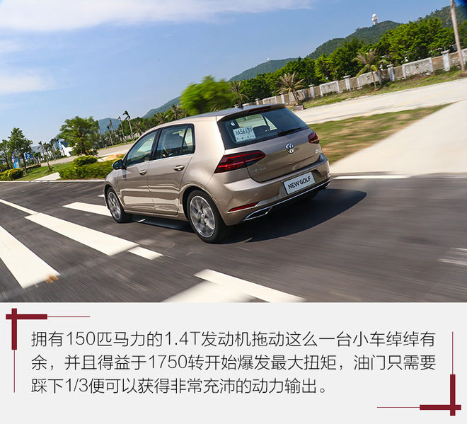 要说高尔夫开起来的感受,我觉得两个字可以概括:轻松。首先,油门输出很线性并且动力爆发比较迅猛,在城市中加速超车很轻松;其次,刹车的脚感线性,初段设定不是很贼,随着踩下踏板的深入,制动力逐渐释放,刹车时不至于出现车内乘客前仰后合的情况;第三,方向盘转动起来非常顺手,转向比较精准并且能够拥有一定的路感回馈,高尔夫的驾驶乐趣基因得到了保留。