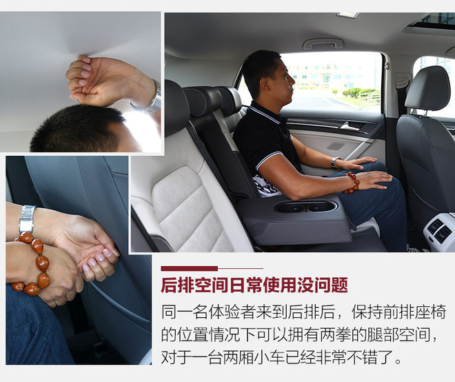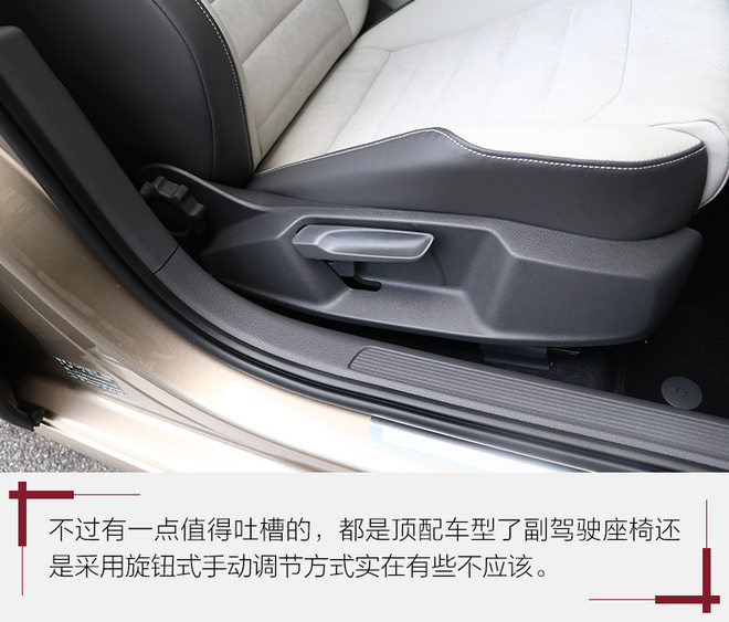 在座椅乘坐表现方面,白色翻毛皮和真皮拼接的座椅拥有非常出色的触感,对于身体的支撑和包裹性也很不错。白色面料一下子为车内增添了更多的温馨气息。乘坐空间方面,由于车身尺寸没有改变,坐在车内空间和老款保持一致,虽然谈不上多么宽敞,但是日常使用完全不会有压抑的感觉。