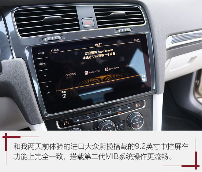 内饰部分在设计层面保留了和老款车型一样的风格,不过在功能性方面可是实实在在前进了一大步。首先咱们先聊一聊这块9.2英寸液晶屏,其实这块屏幕在两天前我试驾进口大众新款蔚揽时就已经体验了一番。它搭载的第二代MIB车机系统采用全新界面样式简洁实用,屏幕分辨率非常高同时支持全触摸操作,屏幕灵敏度和流畅度都非常出色。值得一提的是其APP-Connect系统支持包含百度Carlife在内的三种互联模式。