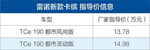 易车武汉报道 10月12日,在刚刚开幕的武汉车展上,新款雷诺卡缤正式上市。新车主要针对外观和内饰细节进行了调整,车身尺寸有所增加,共推出2款车型,售价区间为13.78-14.98万元。2017年12月31日前购车还可享受75%的厂商购置税补贴、3年6次免费保养、5年免费救援等优惠政策。具体如下: