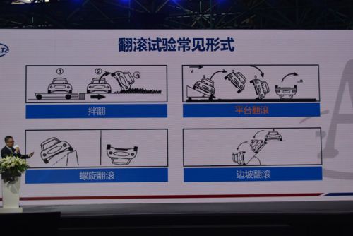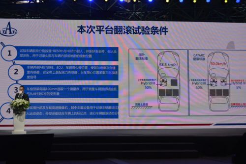 质量检测中心相关研究人员给我们讲述了此次号称最严碰撞试验的基本情况和规则,首先此次碰撞形式为“平台翻滚”,类似于车辆从正侧方受到严重撞击后形成的翻滚。而整体碰撞体系的测量和指定都是按照比国外碰撞更严格以及符合国内道路工况的情形设定的。