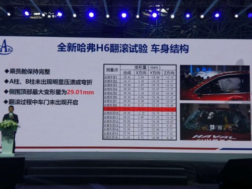 全新哈弗H6在本次测试中,在车身结构、约束系统、假人姿态与乘员损伤四个方面均满足技术指标,通过测试!