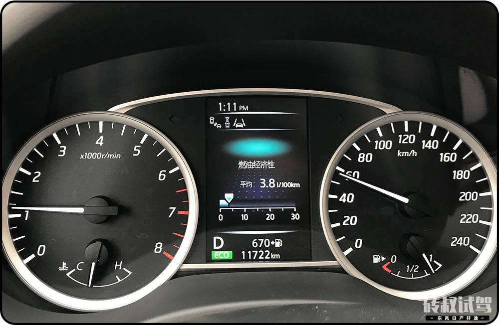 而在ECO模式下,油门的反应并不会那么灵敏,CVT 变速箱可以在相当宽的范围内实现无级变速,依靠变速器无级调速来适应汽车的各种速度。基本上发动机转速不需要超过1500转,即可获得不错的动力输出,巡航时发动机转速基本保持在1100转左右,使发动机长时间工作在最佳工况,提高发动机燃烧效率,燃油经济性相应地得到提高。当然,轩逸还配备了自动启停功能,因此对油耗有进一步的帮助。
