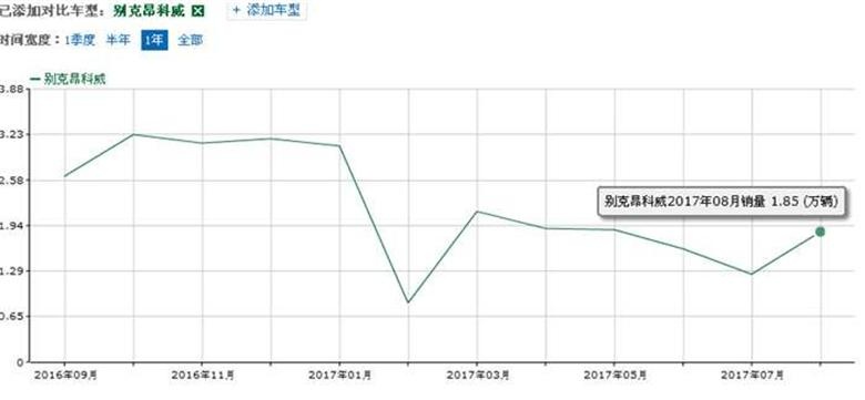 据乘联会的销量数据显示,别克昂科威8月销售18520辆,同比下跌16%,自1月份销量超越3万辆之后,2月份便呈现出断崖式下跌仅销售出0.84万辆,虽然之后的几个月情况有所好转,但较之去年仍旧是负增长状态。