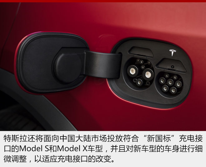 此外,特斯拉还将面向中国大陆市场投放符合“新国标”充电接口的Model S和Model X车型,并且对新车型的车身进行细微调整,以适应充电接口的改变。未来,所有为中国制造的特斯拉车型都将搭载“新国标”充电接口。(图/文 网通社 裴健如)