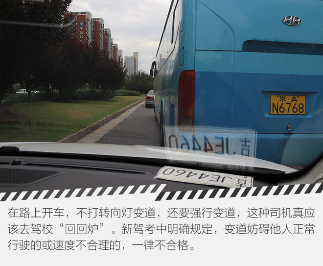 科目三是实际道路考试,新驾考标准主要是强化了开车细节:对雨刷器、大灯的应用;在安全情况下10秒内起步;礼让行人;合理变道;转向灯的使用等。