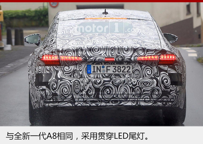 作为换代车型,全新一代奥迪A7将采用与有望在年底上市的第5代A8相同的贯穿式LED尾灯,同时也有望采用OLED光源,夜间点亮后辨识度极高。