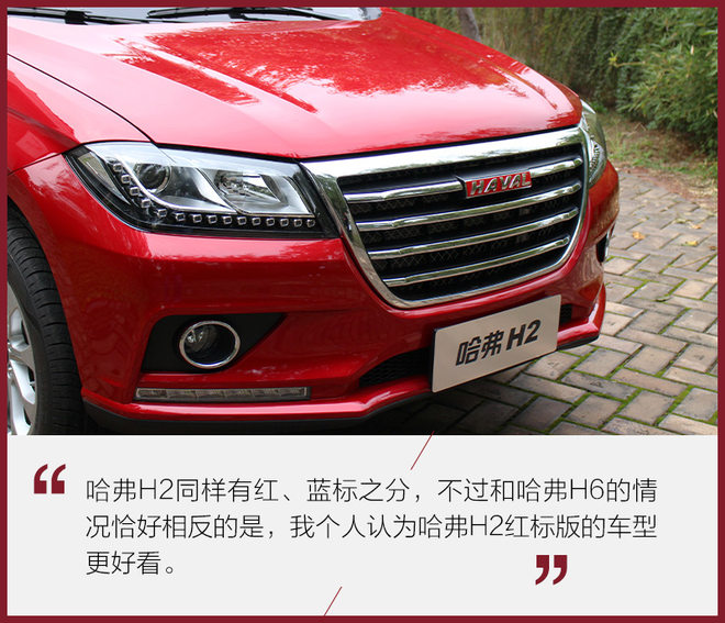 外观方面哈弗H2和哈弗H6给我的感觉恰好相反,红标造型的前脸设计反而更打动我,这次厂家给我安排的两款车正合我意,都是我中意的造型。