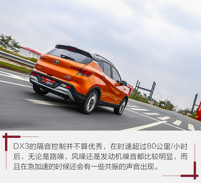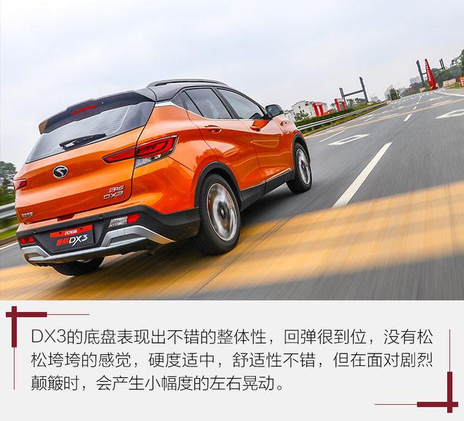 总的来说,DX3的行驶质感在一些同级别的车型当中还算优秀,底盘质感很好整体性十足,偏软的悬架设定也让它具有不错的舒适性,转向质感也不错,但是在经过剧烈颠簸时的左右晃动和不算出色的隔音,在一定程度上削弱了这些优点。