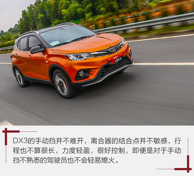 此前我同事曾经详细试驾体验过2018款东南DX3 SRG的CVT版本,所以外观内饰部分我就不再重述,重点讲述一下手动版本DX3的驾驶感受。