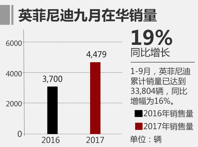 今年1-8月份,英菲尼迪在华整体销量达到29,325辆,同比增长16%。进入9月份,企业的整体销量延续了此前的增长势头。网通社从英菲尼迪官方获悉,今年9月份,英菲尼迪共售出新车4,479辆,同比增长19%。1-9月,英菲尼迪累计销量已达到33,804辆,同比增幅为16%。
