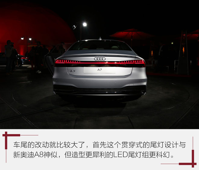 总结:从产品本身来讲,全新一代奥迪A7采用MLB EVO平台后车身重量大幅降低后所带来的更灵敏的操控性会有大幅提升。而对于外观设计来说,更夸张的车头造型比起第一代车型也会更有吸引力一些,尤其是尾部一体式尾灯设计也将成为奥迪下一代车型的家族元素。放眼掀背轿跑车这个细分市场的产品,奔驰CLS作为奥迪A7最直接的竞争对手,曾经也斩获最美车的称号,不过全新一代奥迪A7以先声夺人的态势完成换代工作,产品竞争力进一步增加。(图/文 网通社 黄轩 摄:徐跃翔)