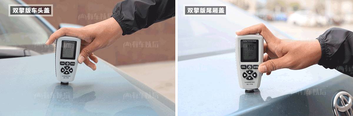 即便是表现稍佳的燃油版,全车漆膜厚度也仅达到100 μm出头,对比之前砖叔实测的速腾漆面厚度(118μm),卡罗拉两款车型均属于偏薄水平。具体来看,两款车型仅有车头盖与尾厢盖能接近110 μm 的“及格线”。不过值得肯定的一点是,同部位的喷涂还算均匀。