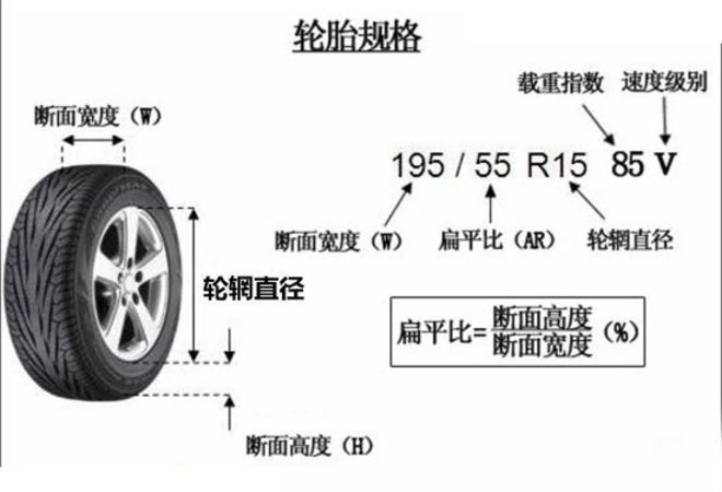 轮胎规格日常关注最多的几组数据:如185/60 R15 84H,这几个数字分别代表185mm胎宽,60%的胎厚与胎宽百分比,15英寸轮圈和84的载重以及H的速度系数。通常,了解胎宽、胎厚与胎宽的百分比、轮圈直径对更换适合你的车的轮胎有帮助了解轮胎的载重和速度系数对行车安全有帮助。