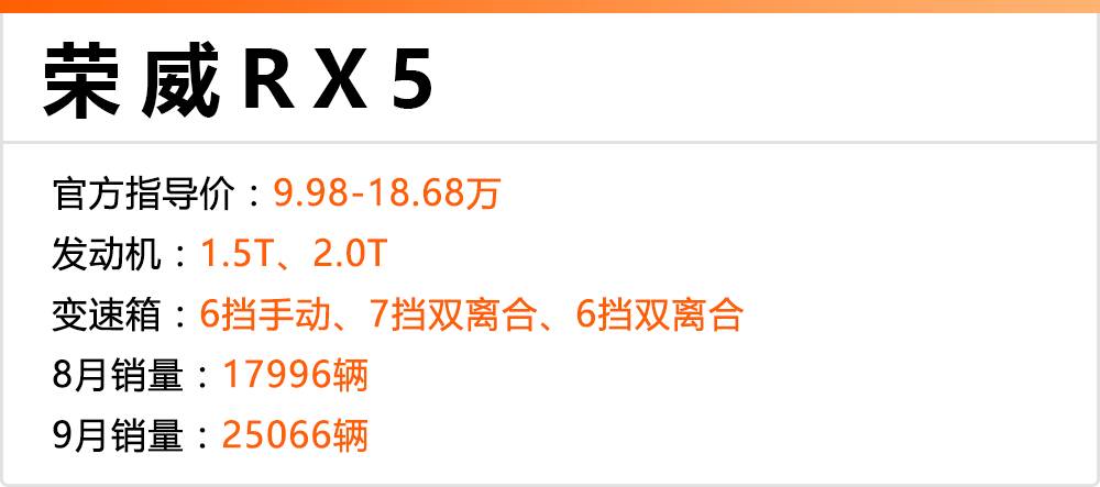 砖叔点评:上汽集团在和阿里巴巴达成合作协议后,推出的一连串互联网汽车车型都取得了不错的成绩,特别是这款RX5,更是销量节节攀升,现在已基本稳坐SUV销量榜前十的位置。不俗的动力表现和同级突出的科技配置都是它制胜的法宝,而且最近2018款的RX5也正式上市,喜欢的朋友可以看一下。
